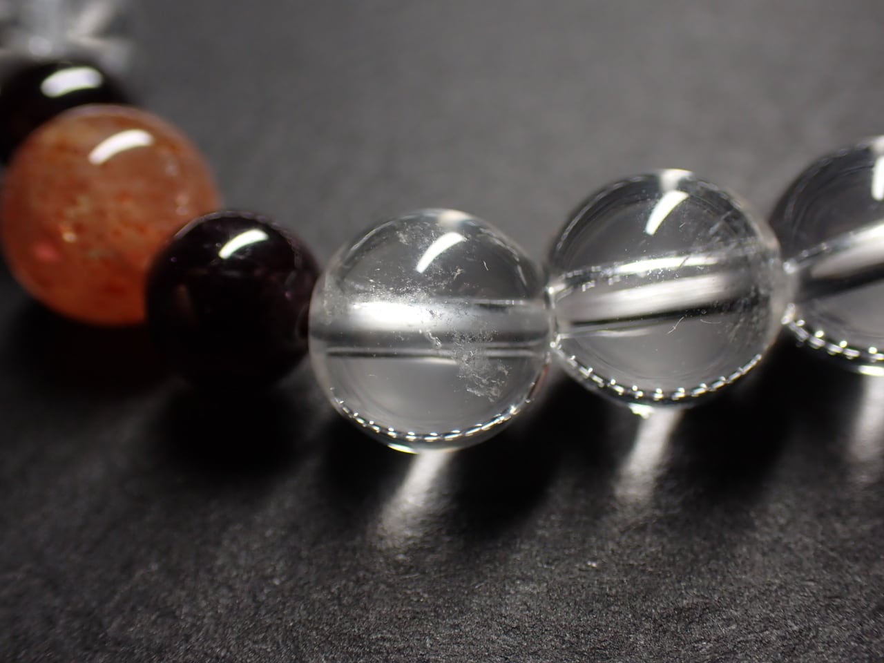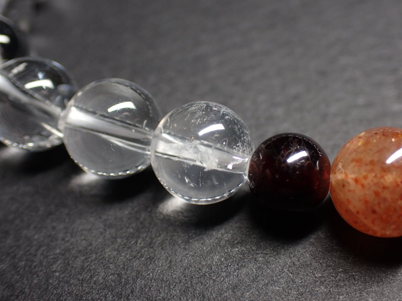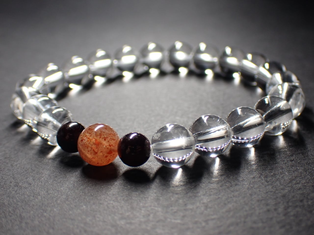 使用天然石…天然水晶8mmx20個 サンストーン8mmx1個 ガーネット6mmx2個