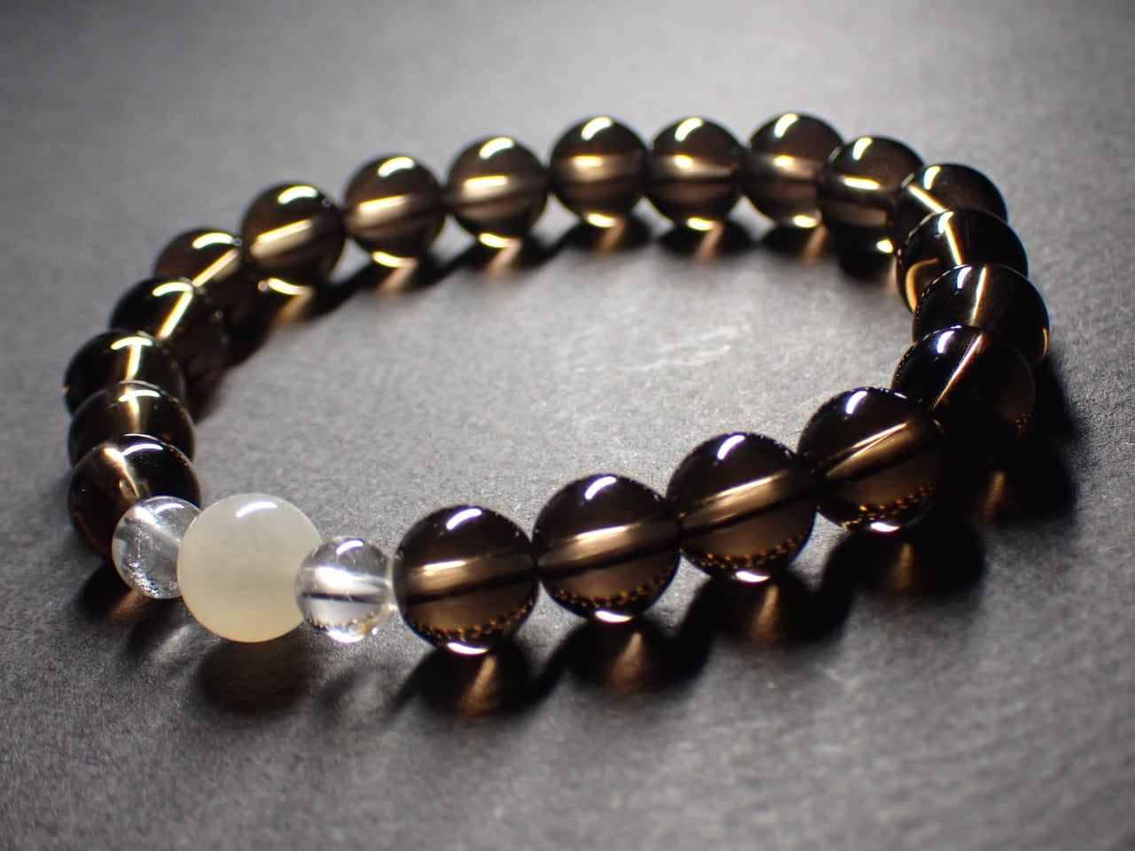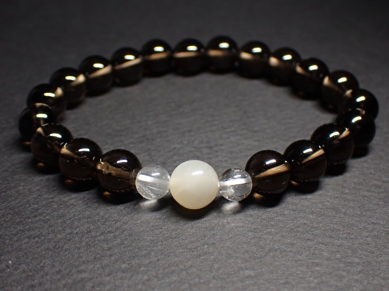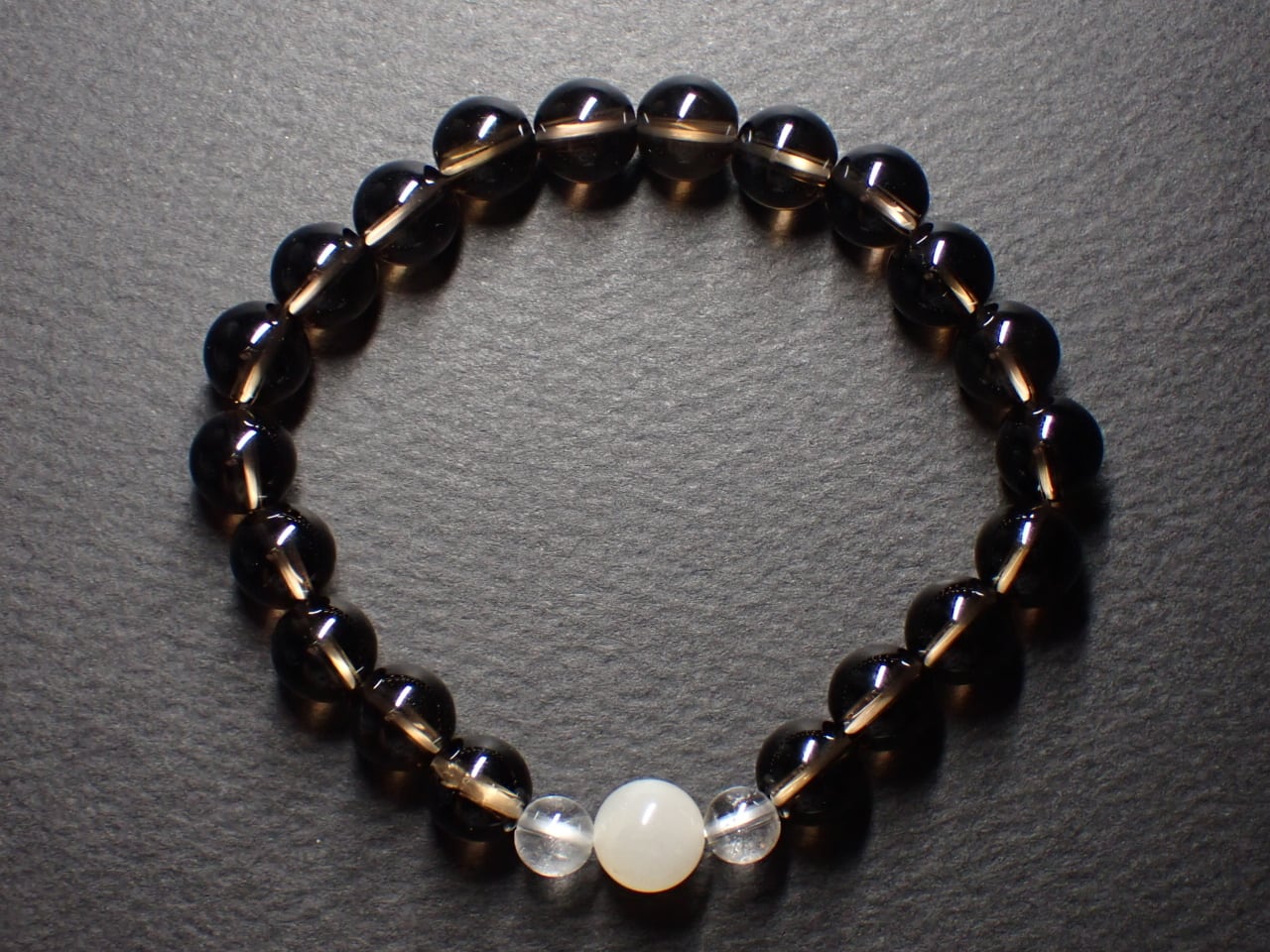 使用天然石…スモーキークォーツ8mmx20個 ホワイトグレームーンストーン8mmx1個 水晶6mmx2個