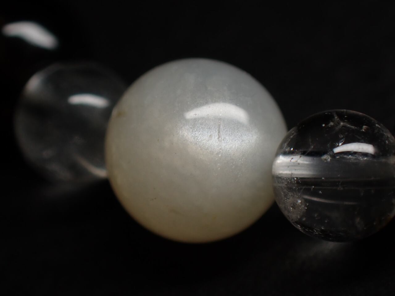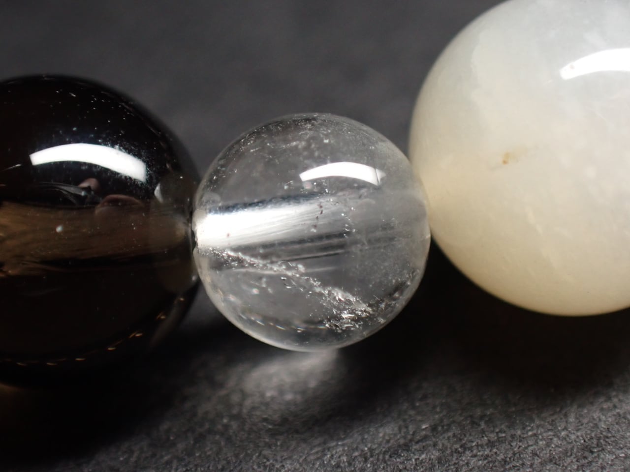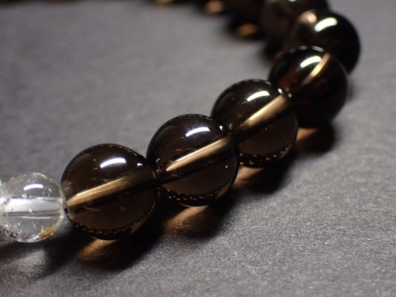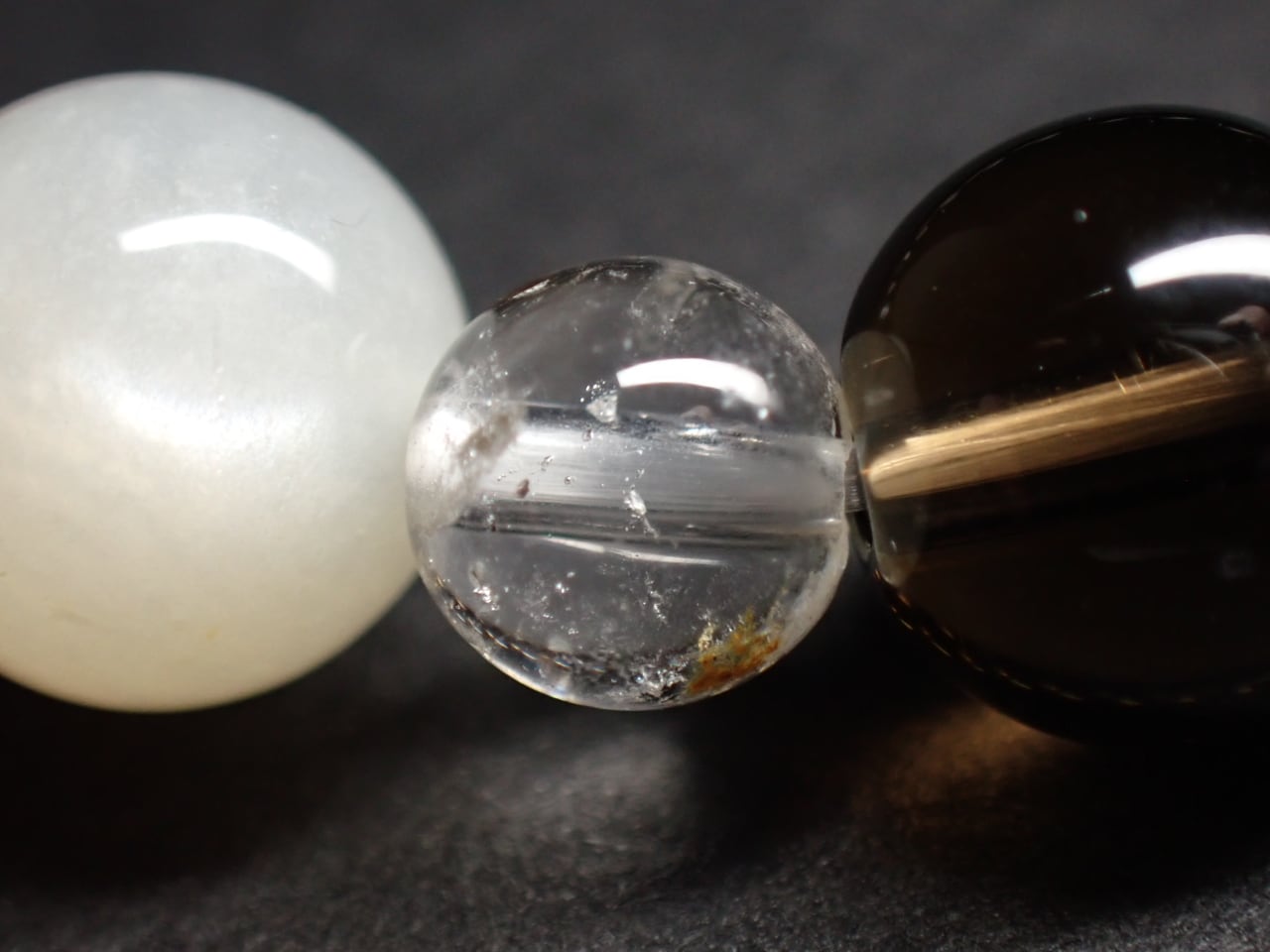 使用天然石…スモーキークォーツ8mmx20個 ホワイトグレームーンストーン8mmx1個 水晶6mmx2個