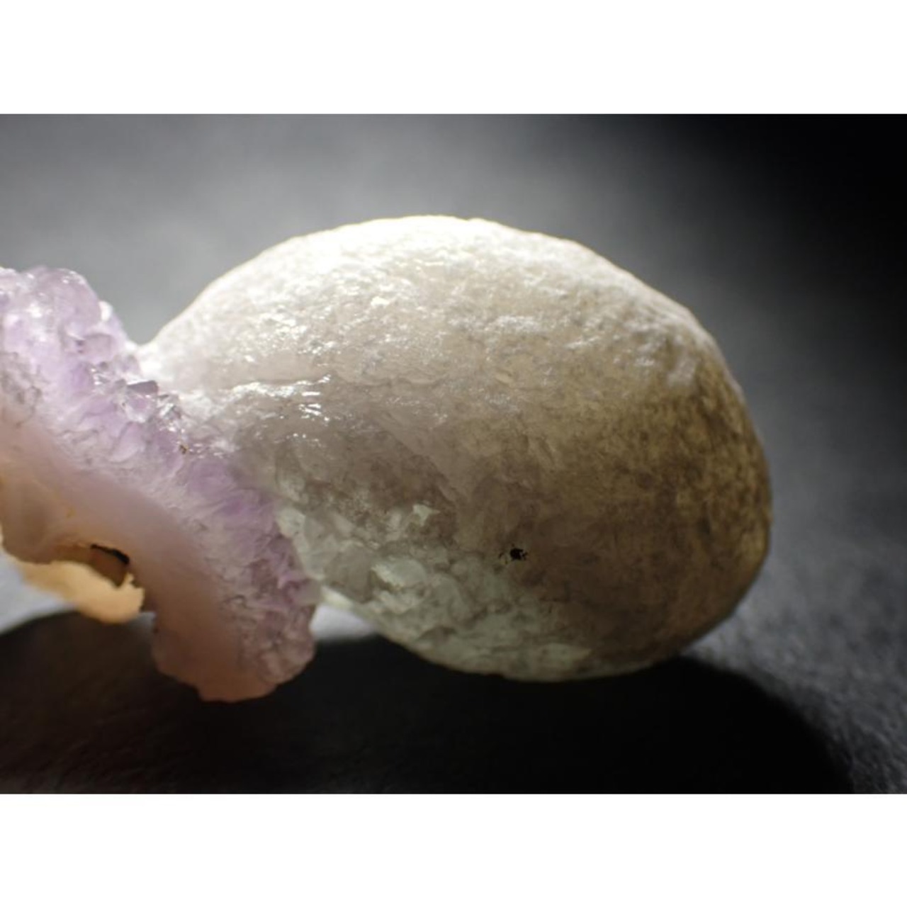 こちらの球状フローライトonアメジストは、フローライト部分が入荷時に比べ表面が粉を吹いたように白っぽくなっている為アウトレットになっております。