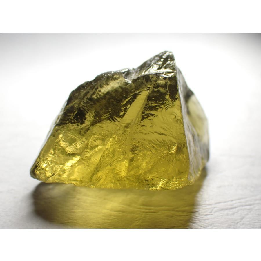 オーロベルディは、乳白色の水晶(メタモルフォーゼス)に放射線を照射し真っ黒になったものを約300℃程に加熱することでグリーンゴールドに変化した水晶のことを言います。