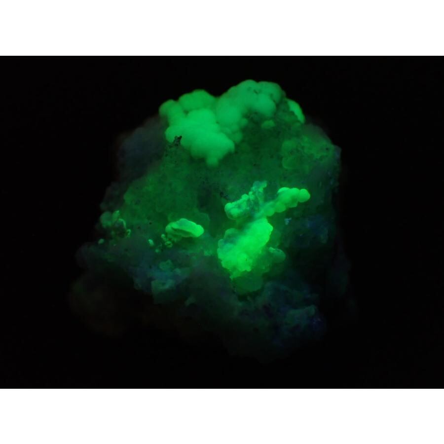 蛍光の写真1枚目に強力な紫外線ライト(紫外線波長 365nm)、2枚目に短波紫外線ライトを使用しております。