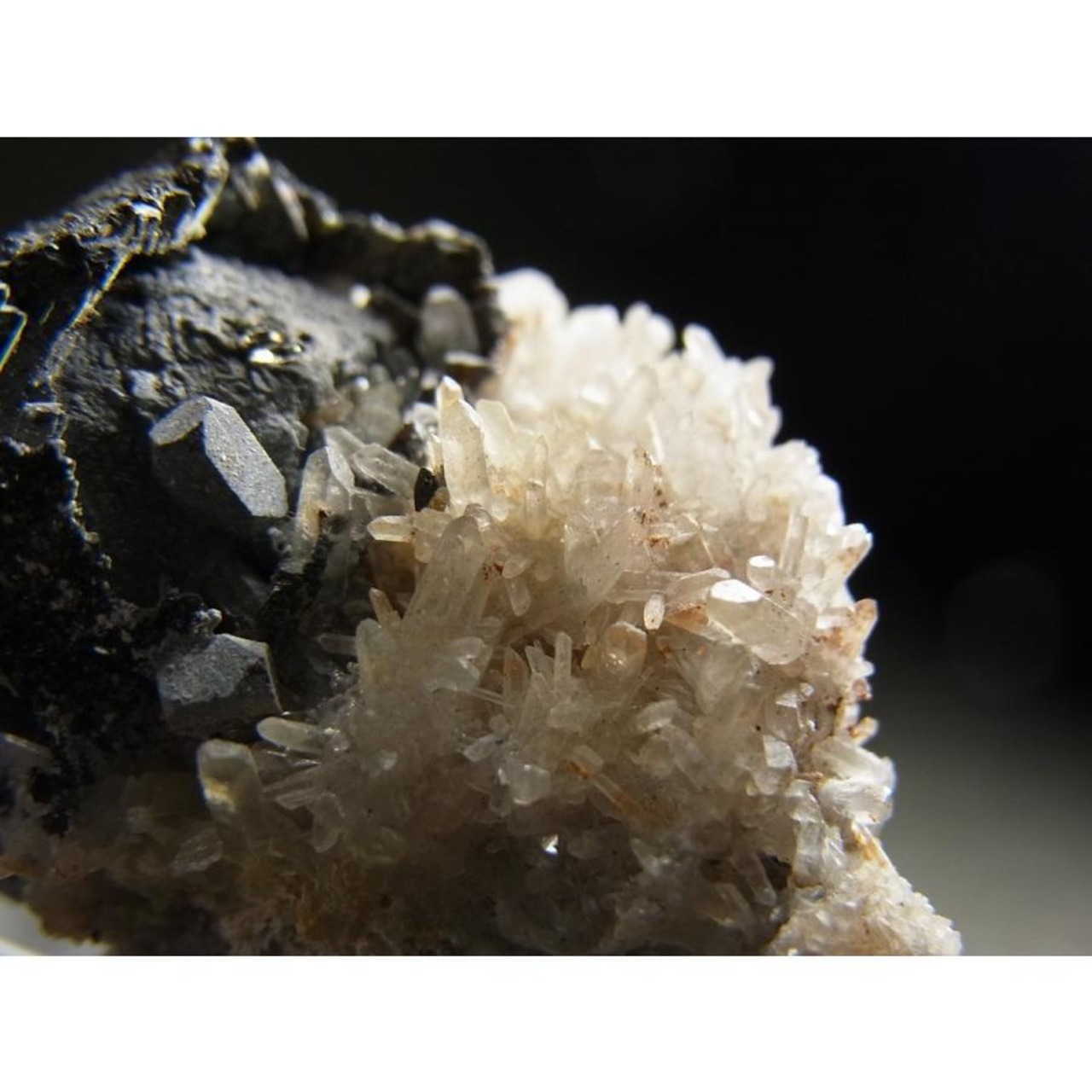 ガレナ(方鉛鉱)、水晶、スファレライト(閃亜鉛鉱)が共生した標本です。