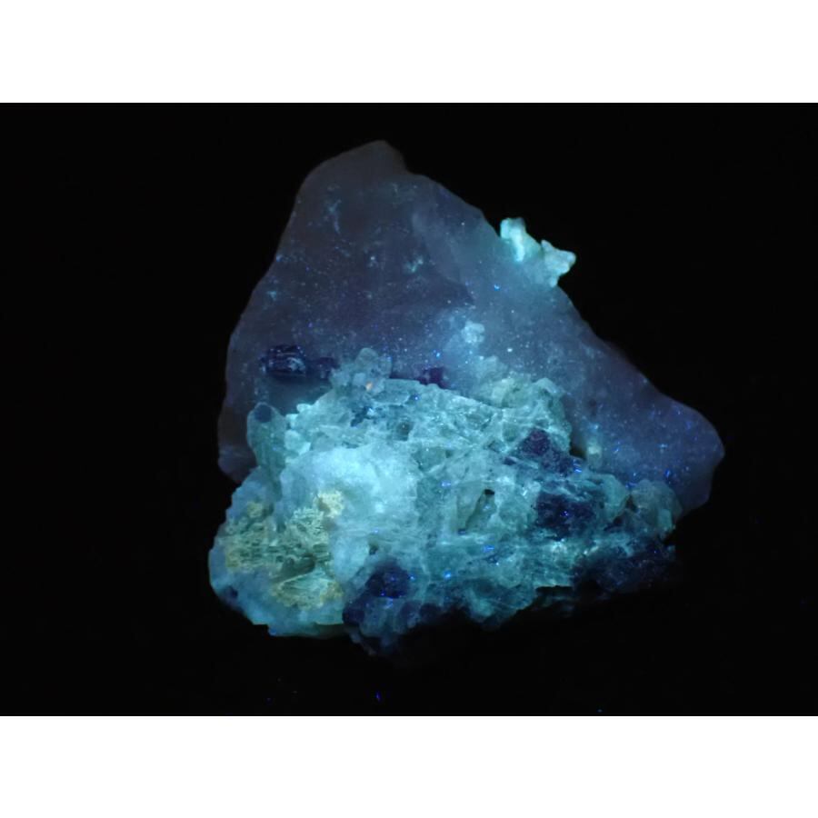ハイパーUVライトで照らしたところ、多少色が変わるくらいの弱い蛍光を示しました。