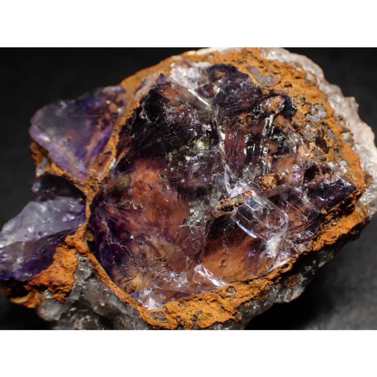 こちらのフローライト(蛍石)は、強力な紫外線ライトでのみ鮮やかな蛍光が出ると思われます。