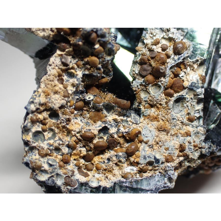 ※Vivianite(藍鉄鉱)は、光に当たることで酸化が進み青黒色に変色する鉱物です。