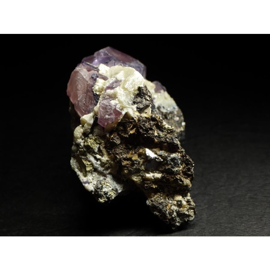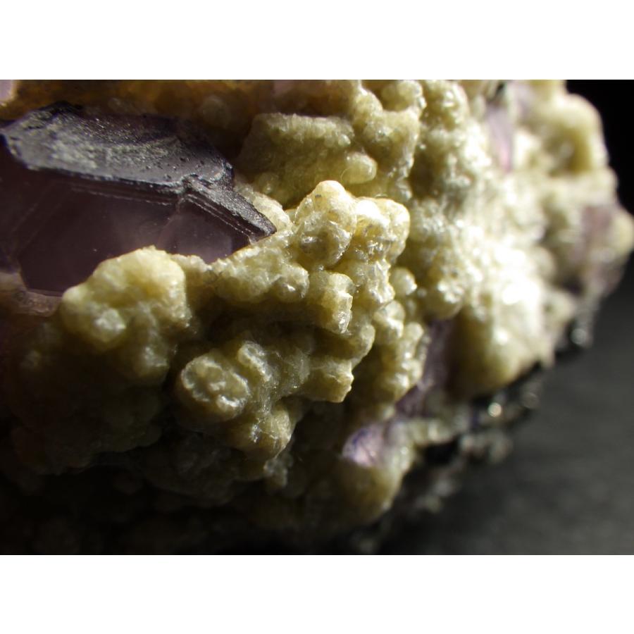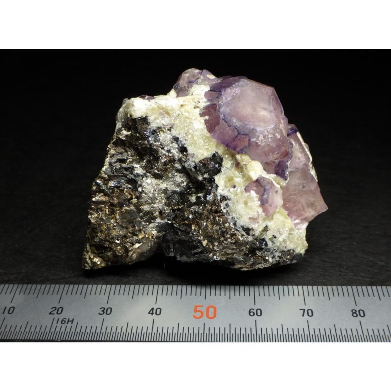こちらはパイライト(黄鉄鉱)やアラゴナイト(霰石)と思われる鉱物などが確認できます。
