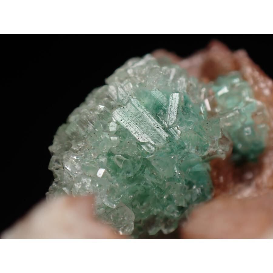 ローザサイト(ローザ石、亜鉛孔雀石)の表面を覆っている透明な鉱物はジプサム(石膏)です。