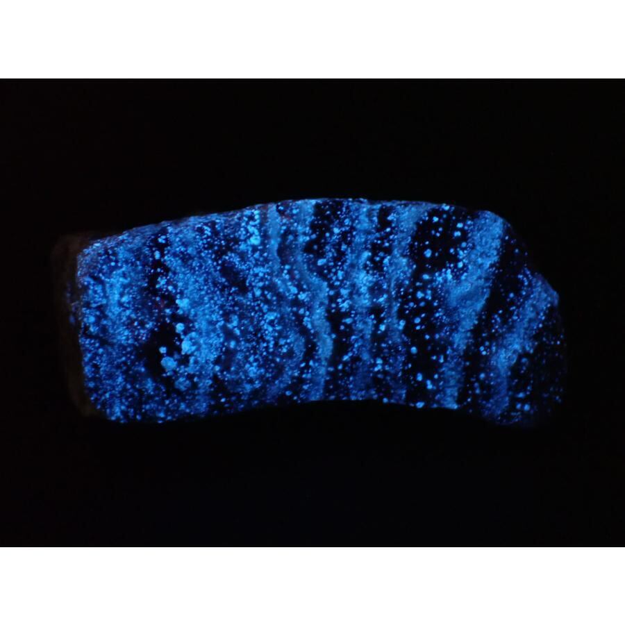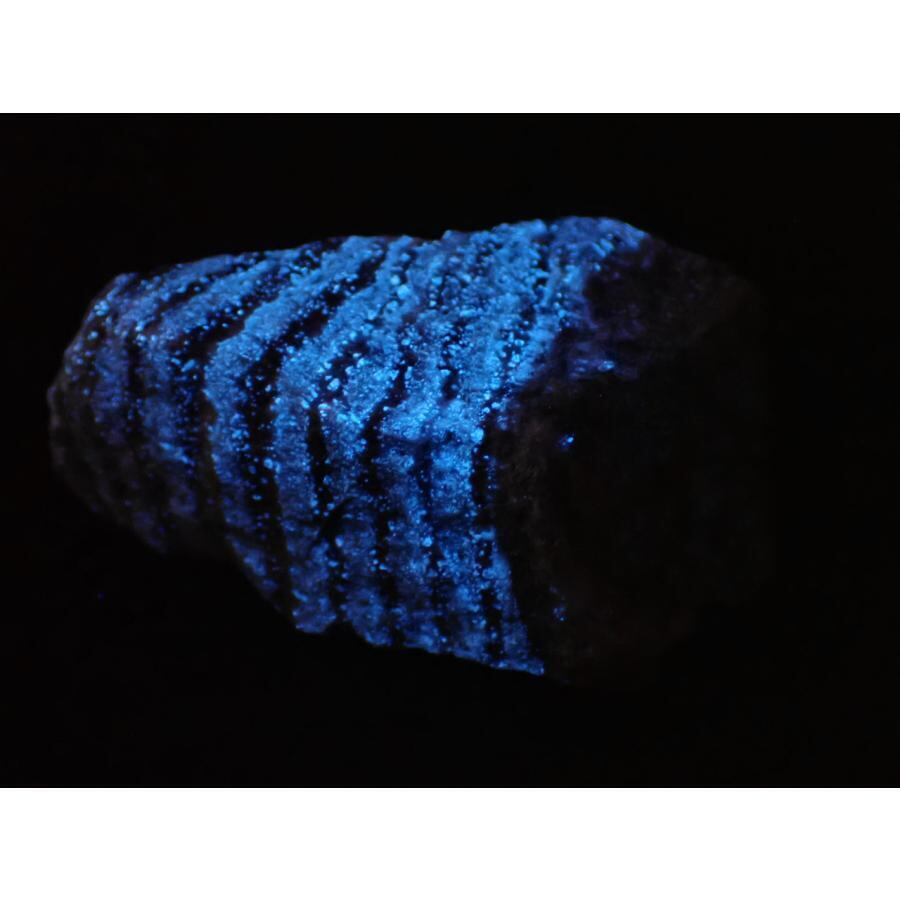 灰重石(Scheelite)は短波紫外線ライトで照らすと青白く蛍光します。