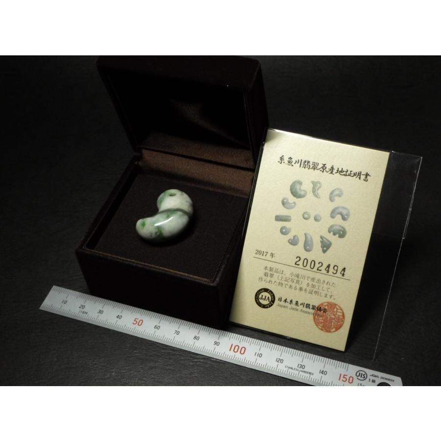 こちらの翡翠には小滝川で産出された証明書を同封しております。