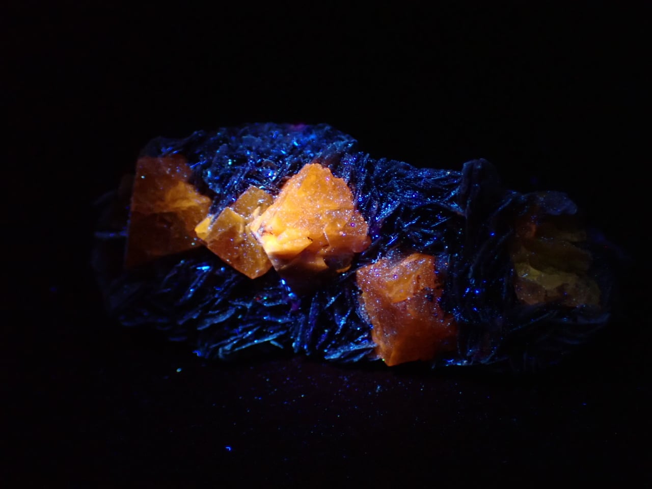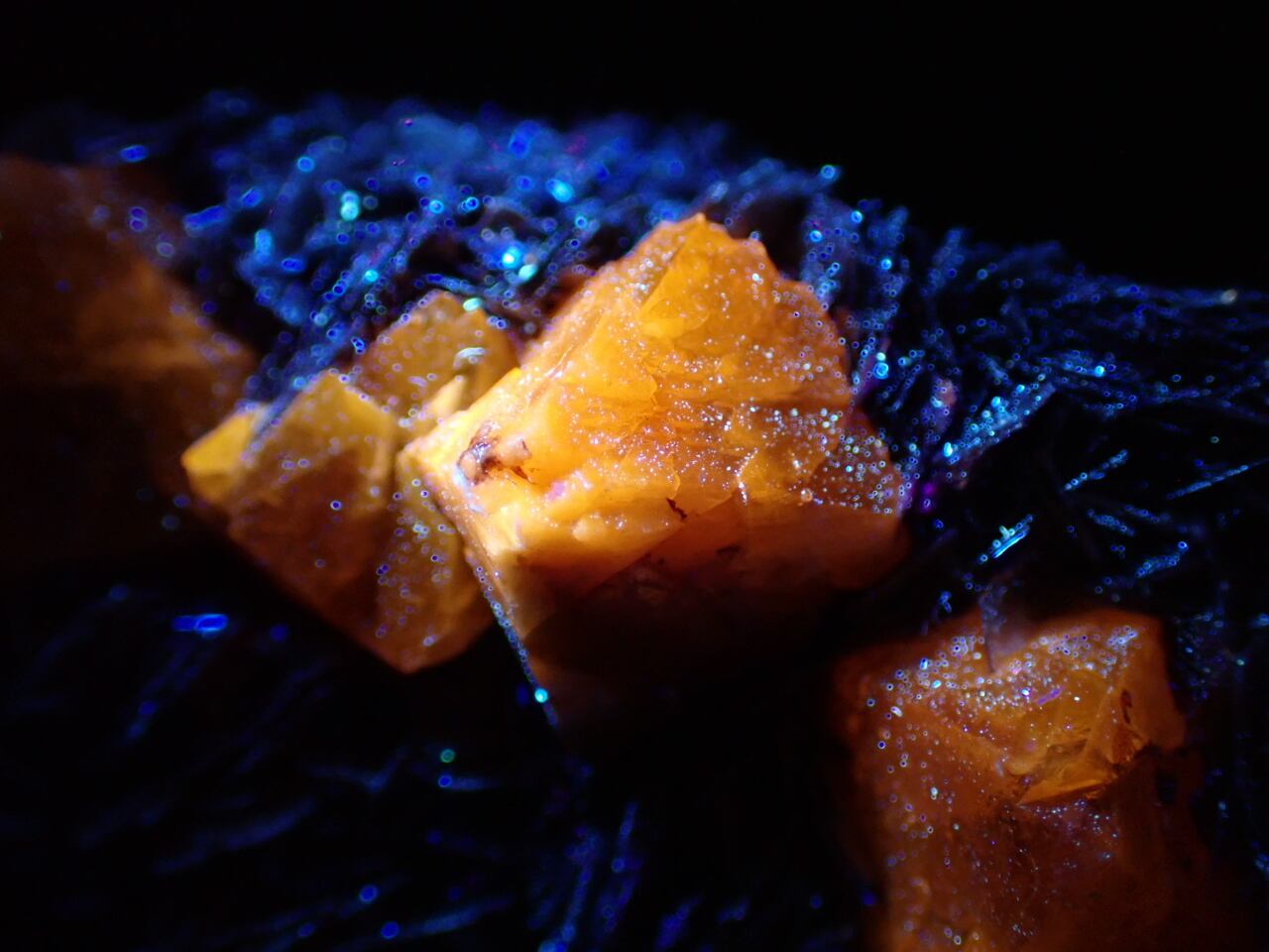 蛍光の写真一枚目にハイパーUVライト(365nm)、二枚目に短波紫外線ライトを使用しております。