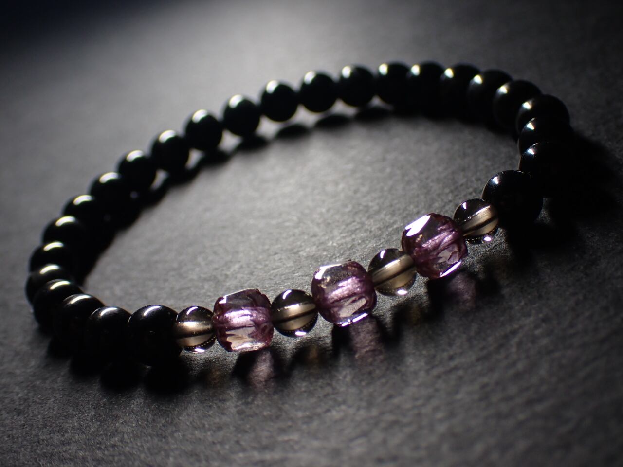 使用天然石…ブラックタイガーアイ6mmx25個 スモーキークォーツ4mmx4個 ガラスビーズ5mmx3個