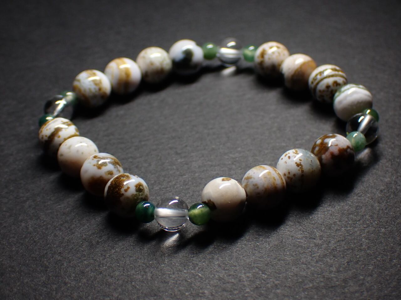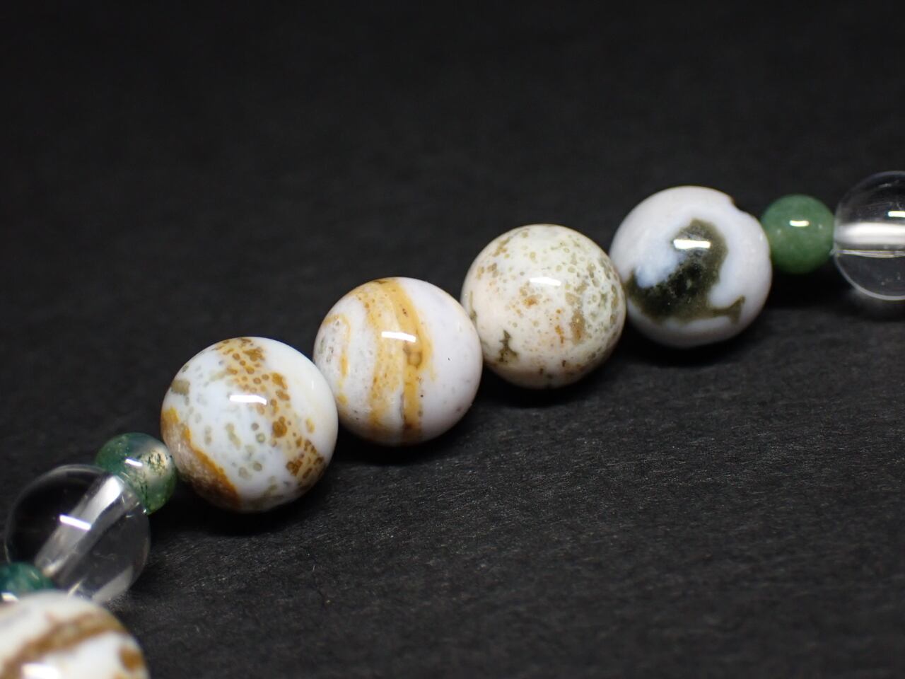 使用天然石…ジャスパー8mmx16個 水晶6mmx4個 モスアゲート4mmx8個
