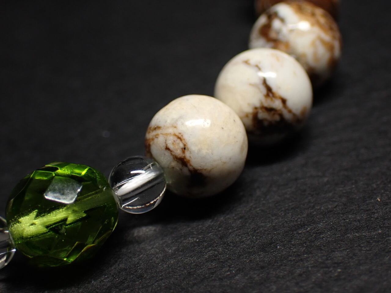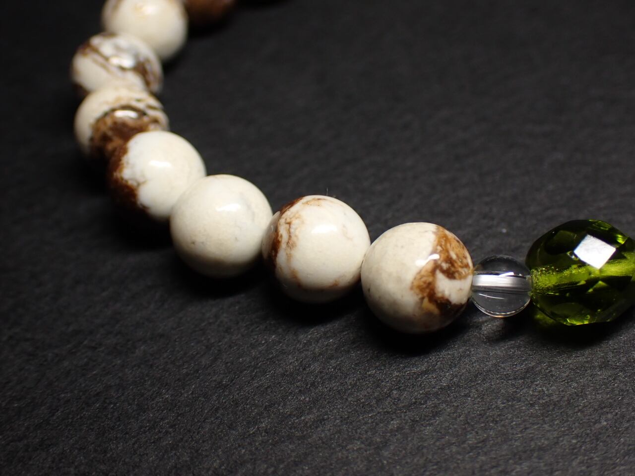 使用天然石…レモンクリソプレーズ8mmx18個 ガラスビーズ8mmx3個 水晶4mmx4個