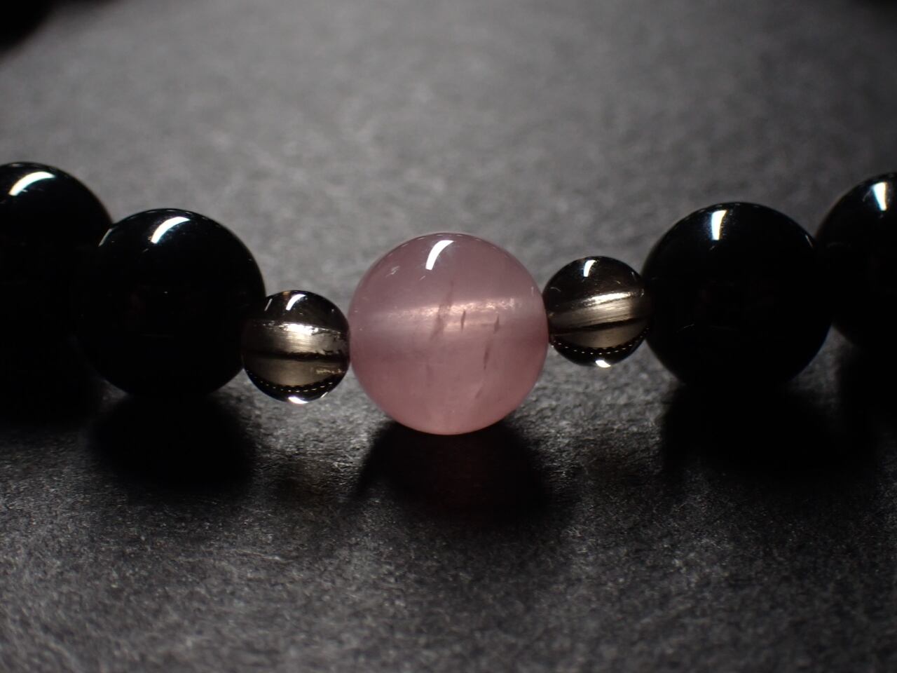 使用天然石…ロシア産ブラックネフライト8mmx22個 マダガスカル産ディープローズクォーツ8mmx1個 スモーキークォーツ4mmx2個
