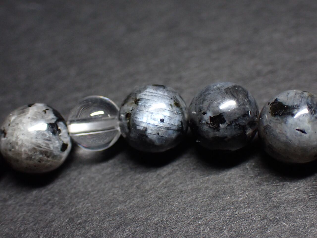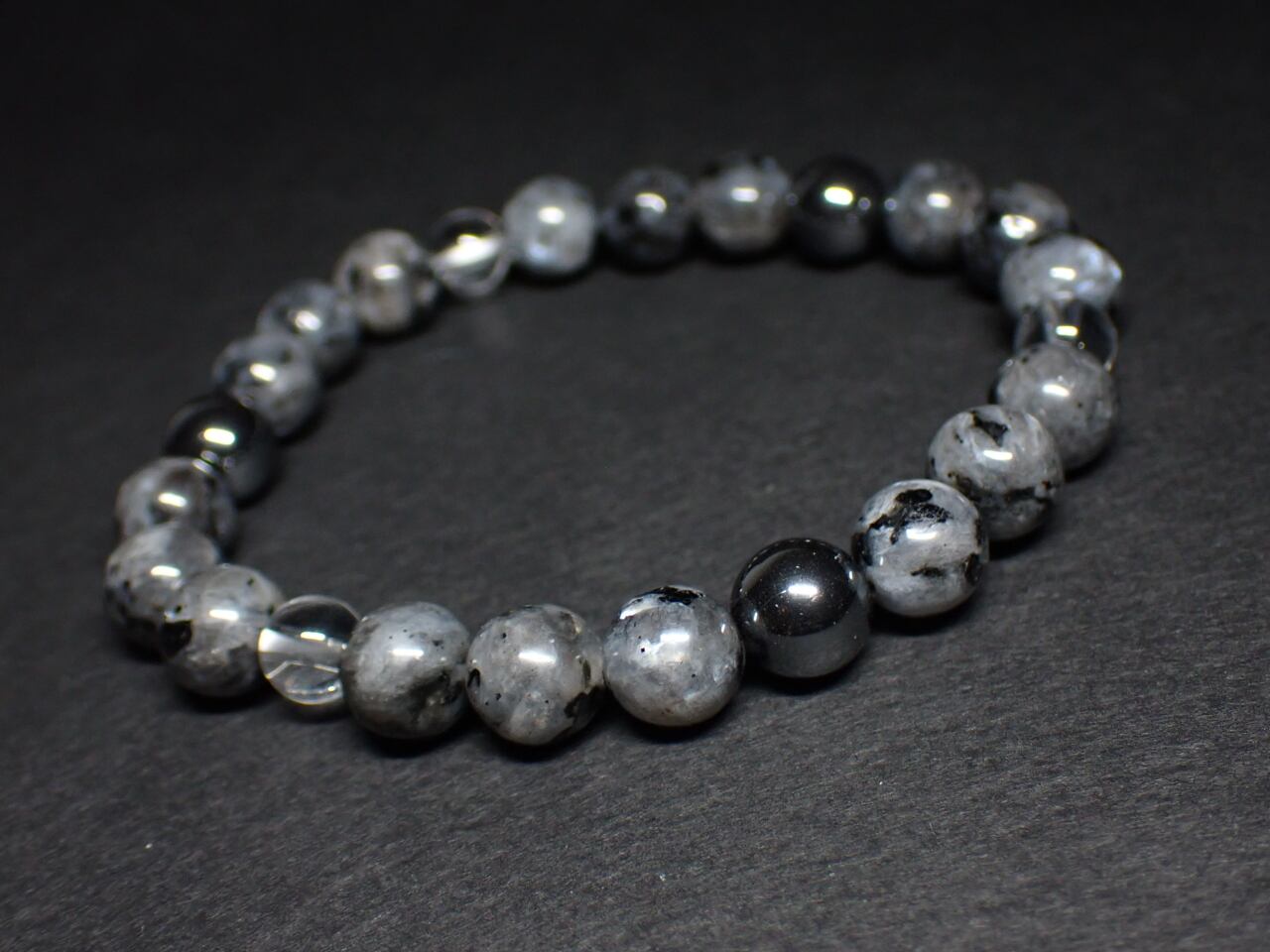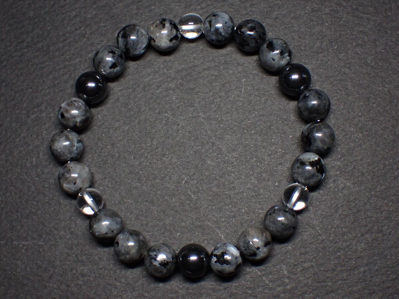 使用天然石…ラルビカイト(グレード低めです)8mmx18個 ヘマタイト8mmx3個 水晶6mmx3個