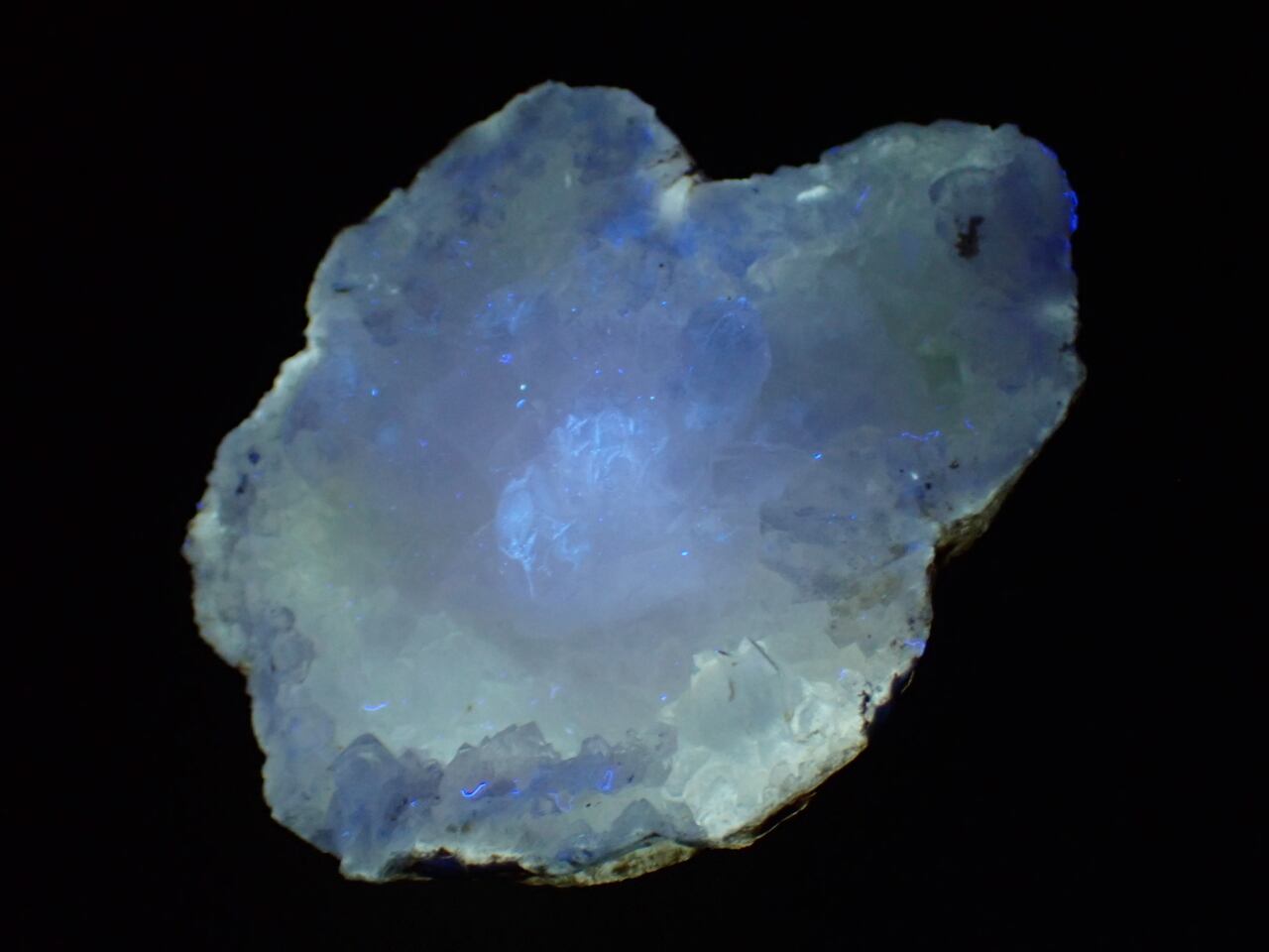 結晶ではなく外殻付近が蛍光しているようです。