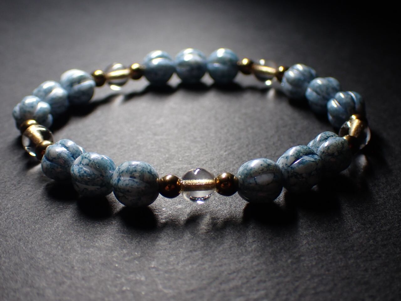 敢えて天然石を一切使わずガラスビーズのみでブレスレットを作ってみよう!と作り始めたブレスレットです。