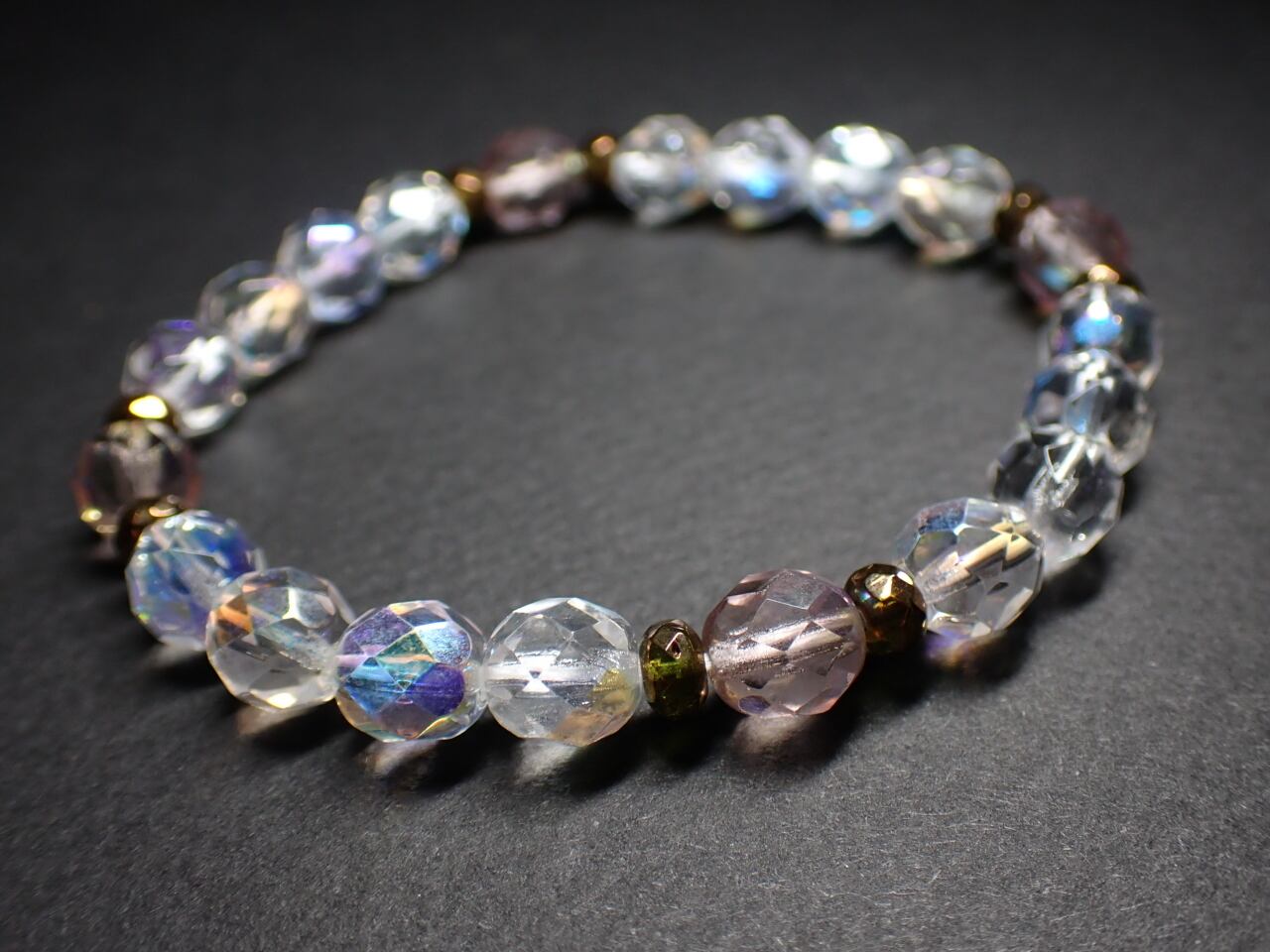 敢えて天然石を一切使わずガラスビーズのみでブレスレットを作ってみよう!と作り始めたブレスレットです。