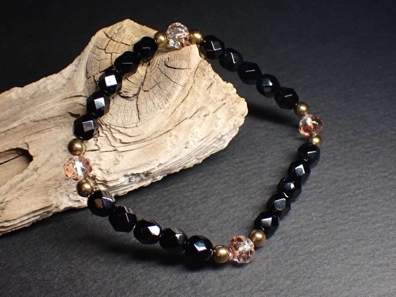 敢えて天然石を一切使わずガラスビーズのみでブレスレットを作ってみよう!と作り始めたブレスレットです。