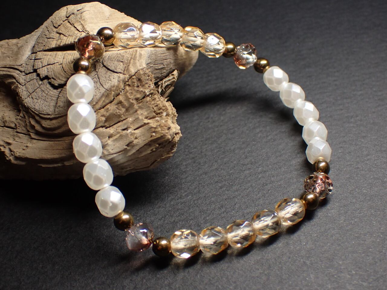 敢えて天然石を一切使わずガラスビーズのみでブレスレットを作ってみよう!と作り始めたブレスレットです。