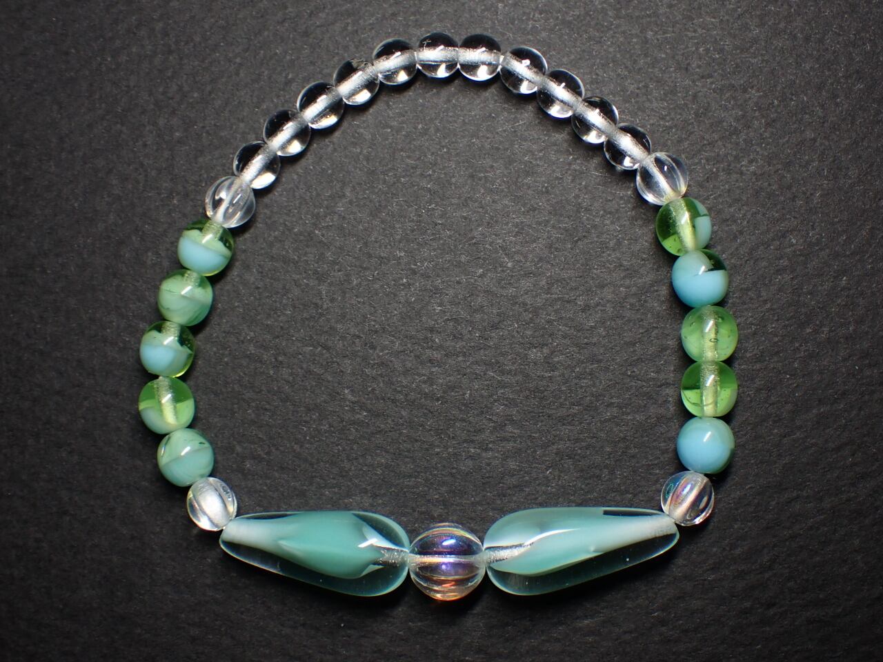 敢えて天然石を一切使わずガラスビーズのみでブレスレットを作ってみよう!と作り始めたブレスレットです。