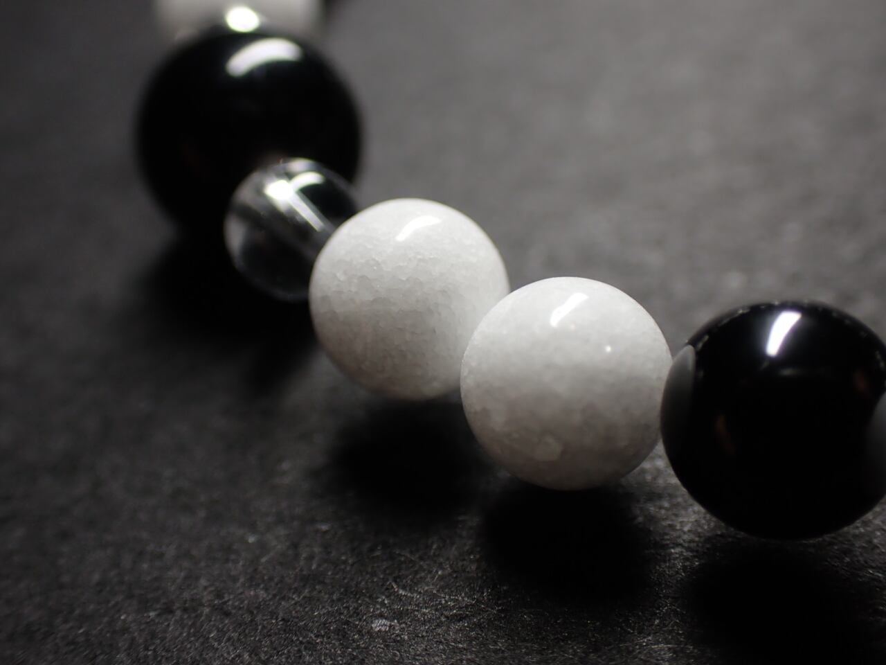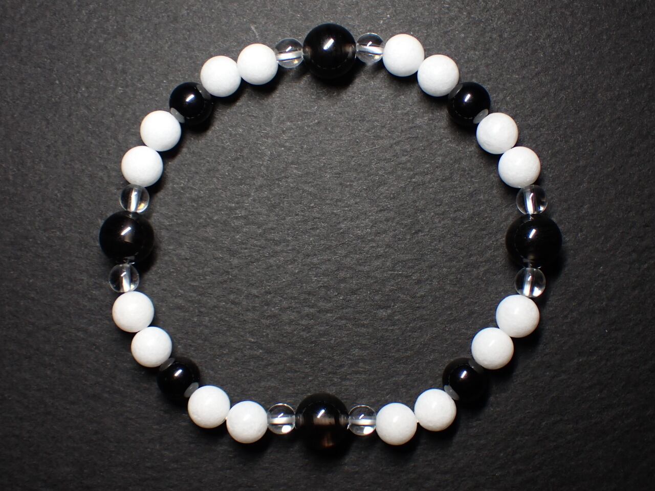 使用天然石…ミッドナイトレースオブシディアン8mmx4個 ブラックスピネル6mmx4個 クォーツァイト6mmx16個 水晶4mmx8個