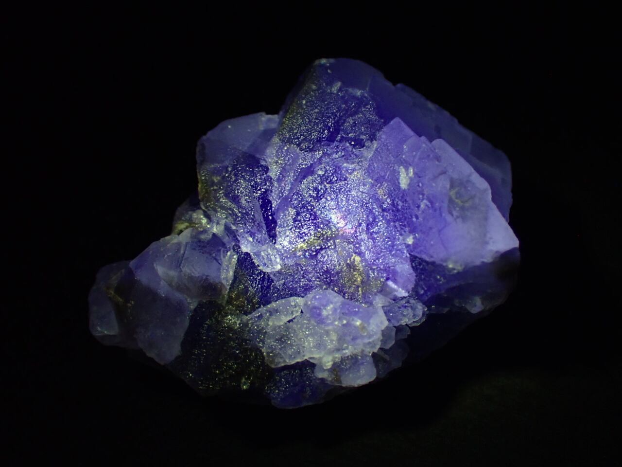 蛍光の写真一枚目にハイパーUVライト(365nm)、二枚目に白い光のブラックライト(長波)を使用しております。