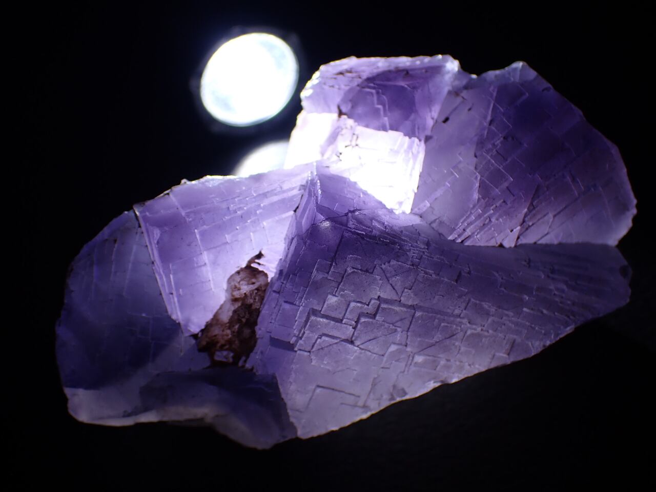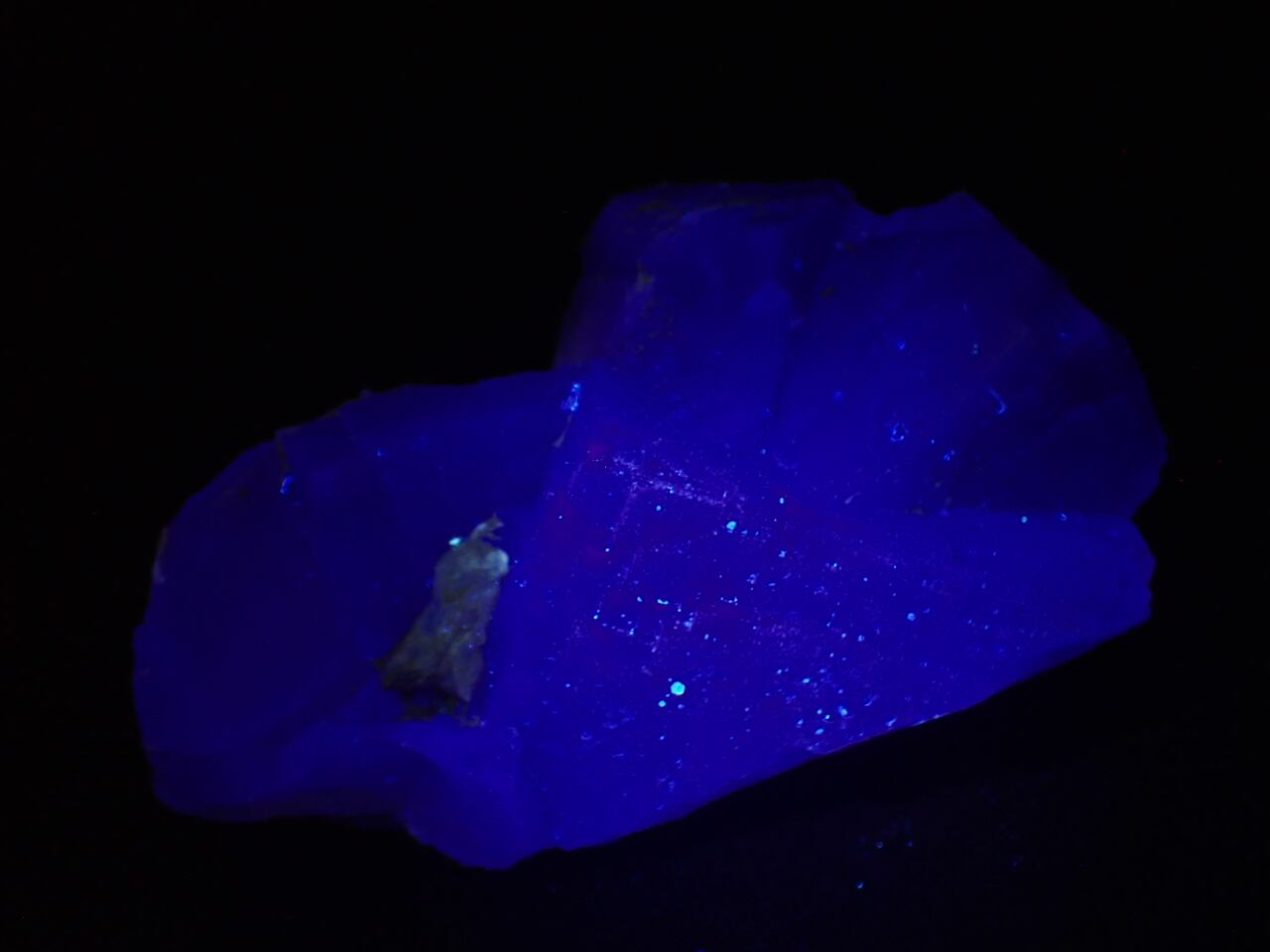 蛍光の写真一枚目にハイパーUVライト(365nm)、二枚目に白い光のブラックライト(長波)を使用しております。