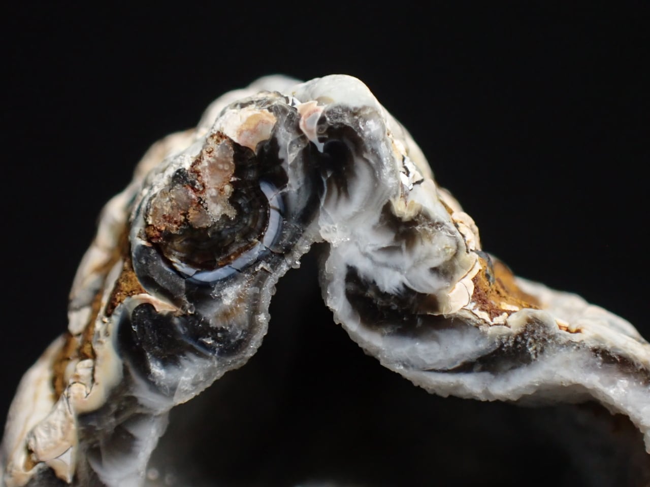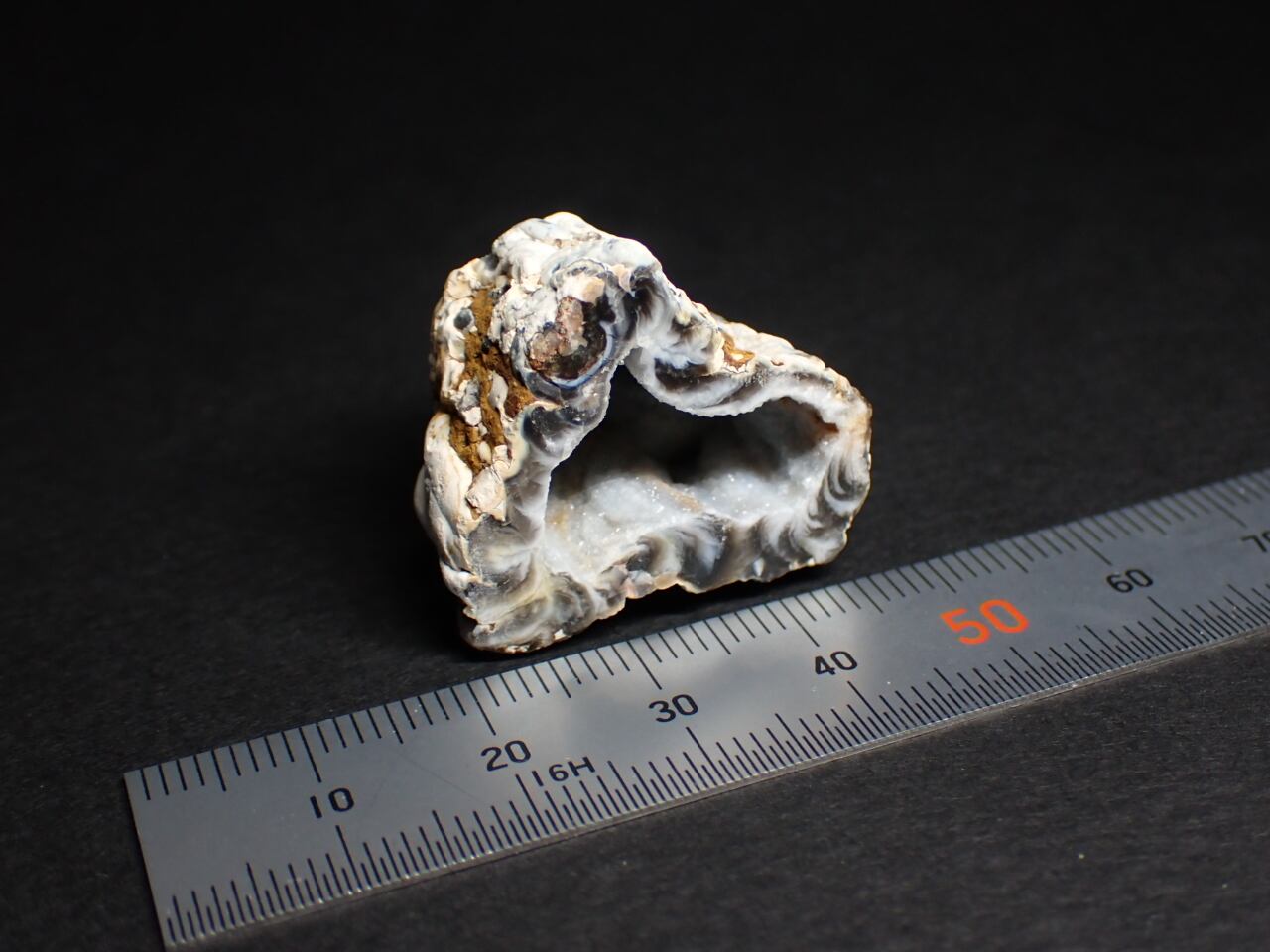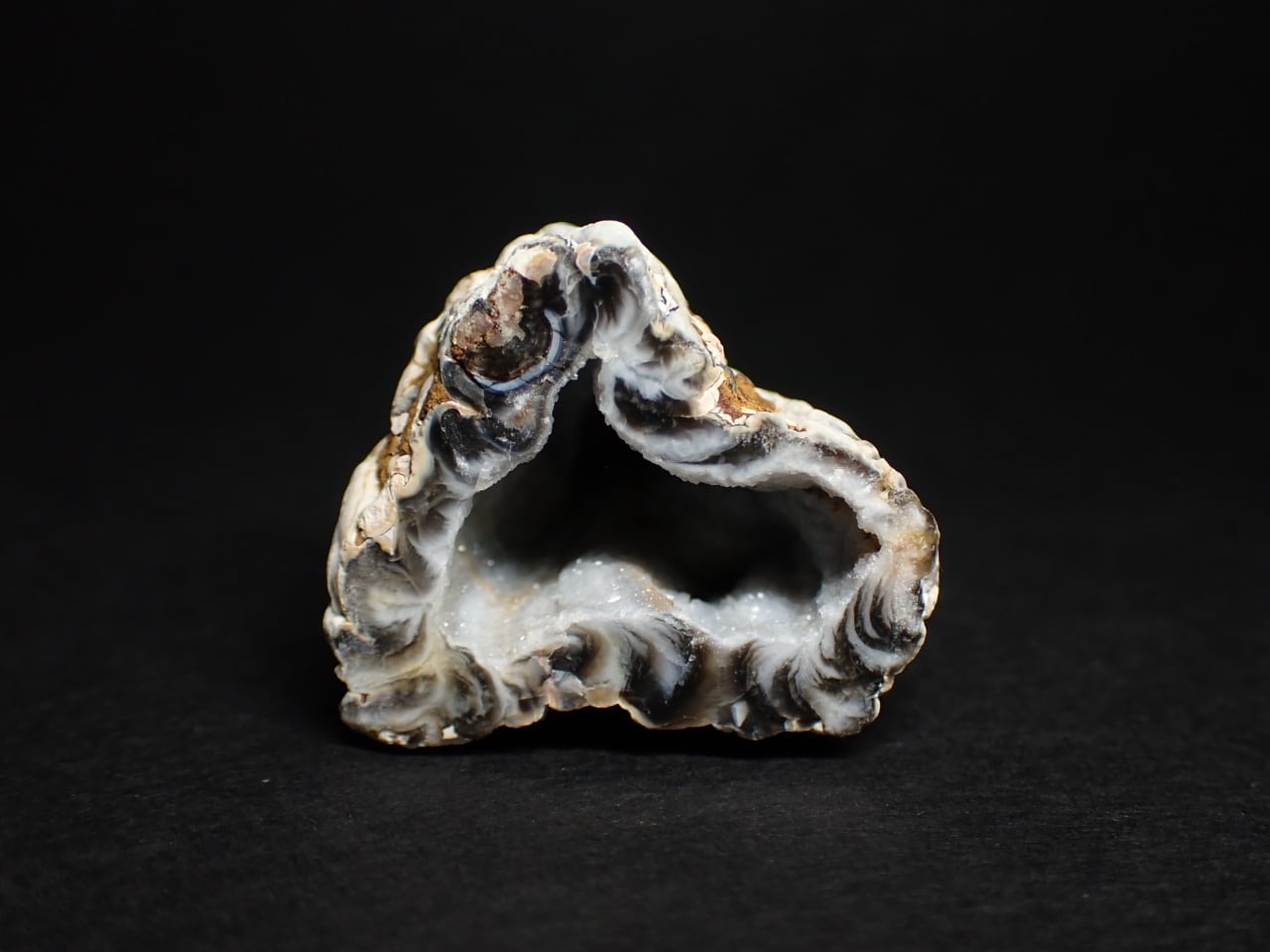 アゲートジオード(瑪瑙の晶洞)を半分に切断した標本です。