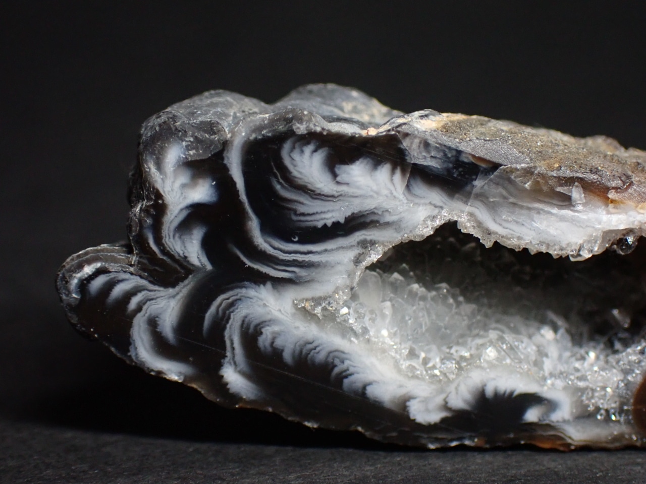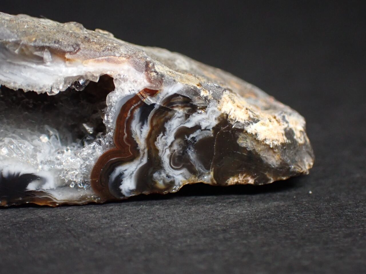 アゲートジオード(瑪瑙の晶洞)を半分に切断した標本です。